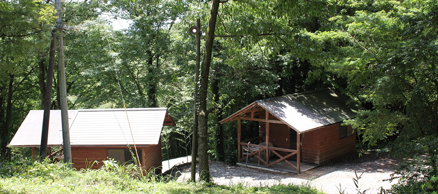 頂上広場の奥、平家の8畳程の広さのバンガローが2棟並んでいます。ベランダ部分がありますので、バーベキューなど屋根の下でゆっくりとできます。