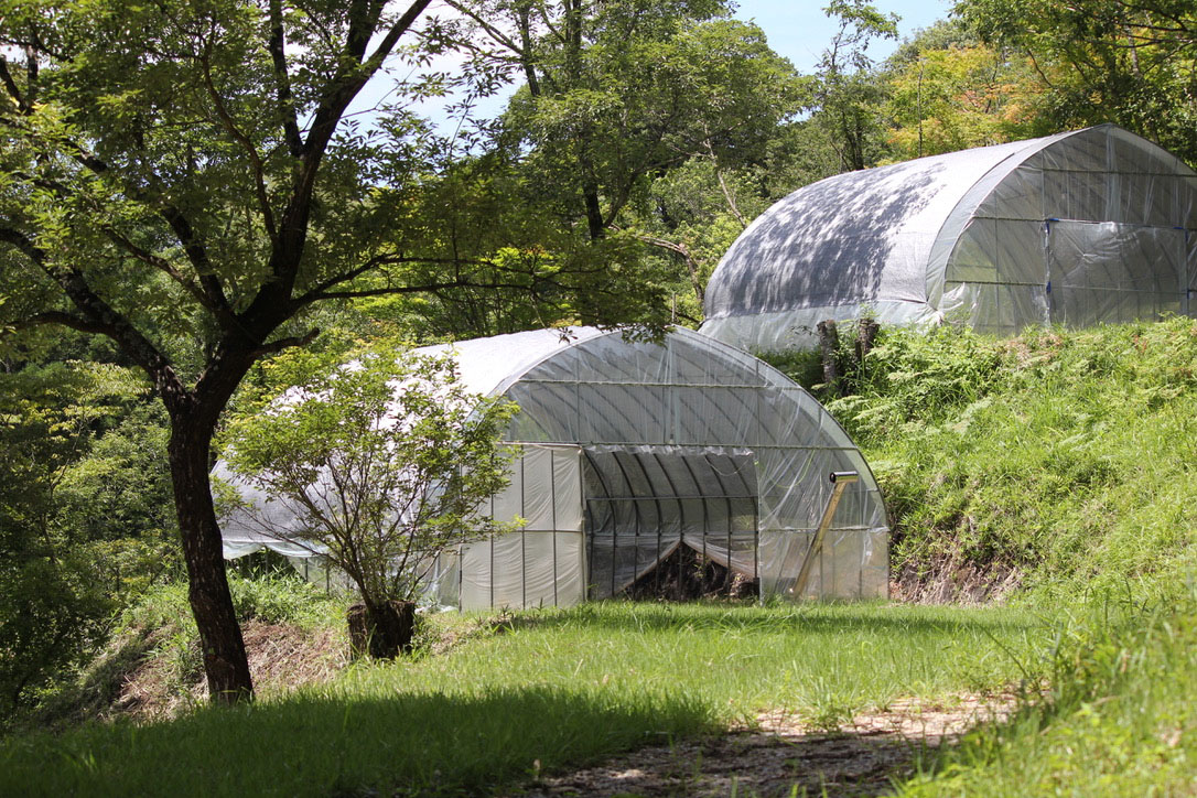 管理棟から下った山側と西の木立の中にある棚田状のドームサイトです。頂上に近いサイトは夕陽が綺麗に見えます。簡易シンクが設置されています。
