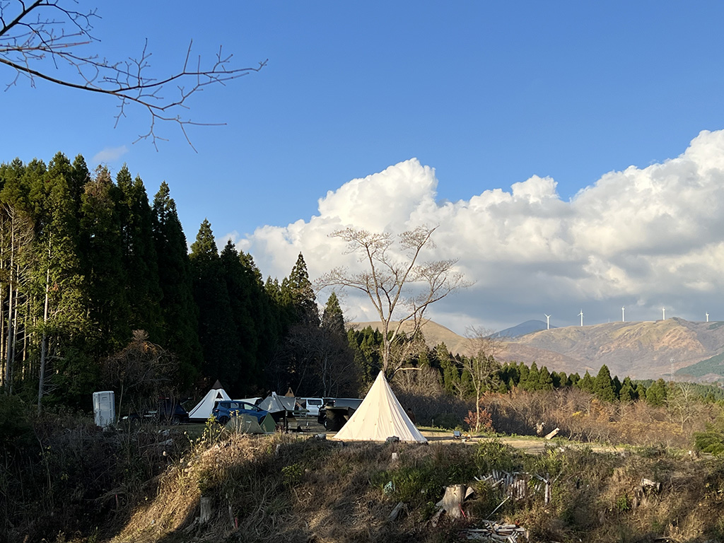 台風で倒れた杉山に、コツコツと造った熊本県阿蘇郡南小国にあるキャンプ場です。