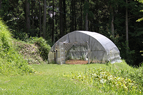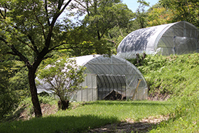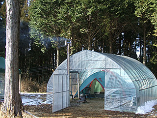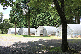 サイトNO.1〜12に全天候型ドームサイトがあります。ビニールハウスと侮るなかれ。雨や雪が降ってもテントを撤収させることなく安心して宿泊できる十分なスペースがあります。風の強い日や、冬の寒い日でも暖かく安心して過ごせます。