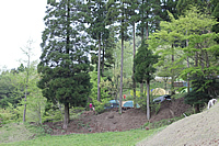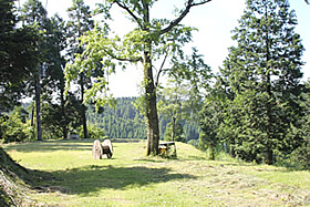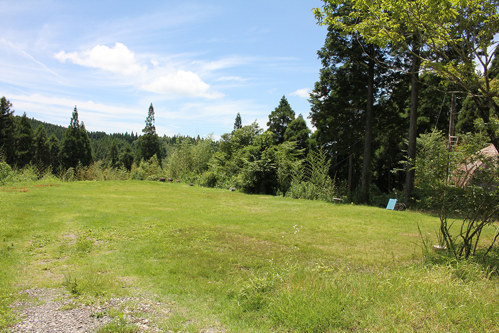 No.7(ドームサイトBエリア) NO6の道路を挟んだ斜後方の谷側のサイト。西側が開けているので夕日が綺麗に見える。杉林の横のため朝陽は、木の影になります。 |