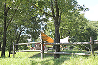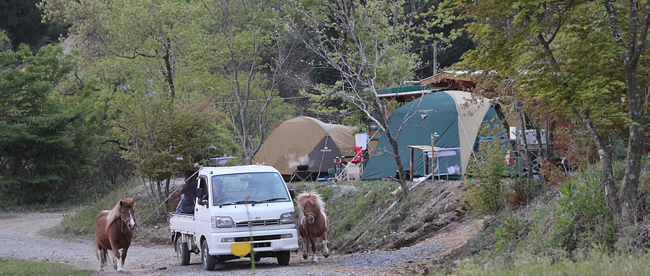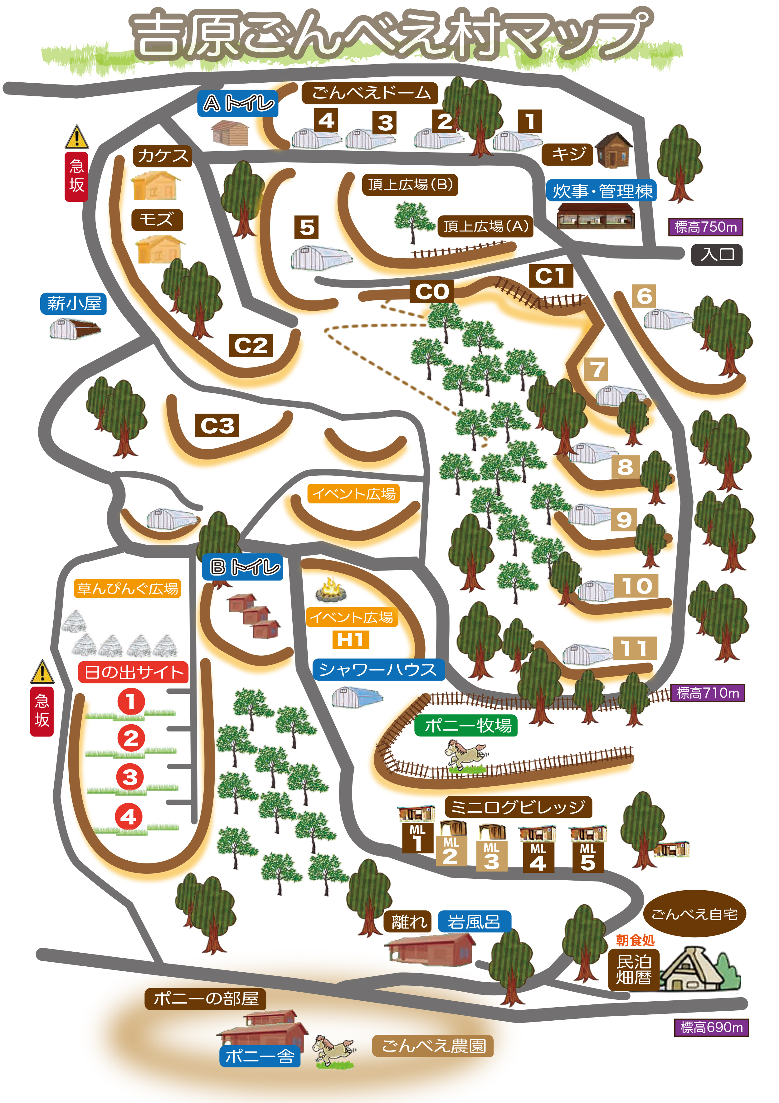 No.11(ドームサイトBエリア) No10のすぐ下のサイト。棚田の4段目になります。道路を挟んでポニー牧場があります。 シンクは各サイトに設置されていますが、、Bトイレまでは50mほどあります。 |